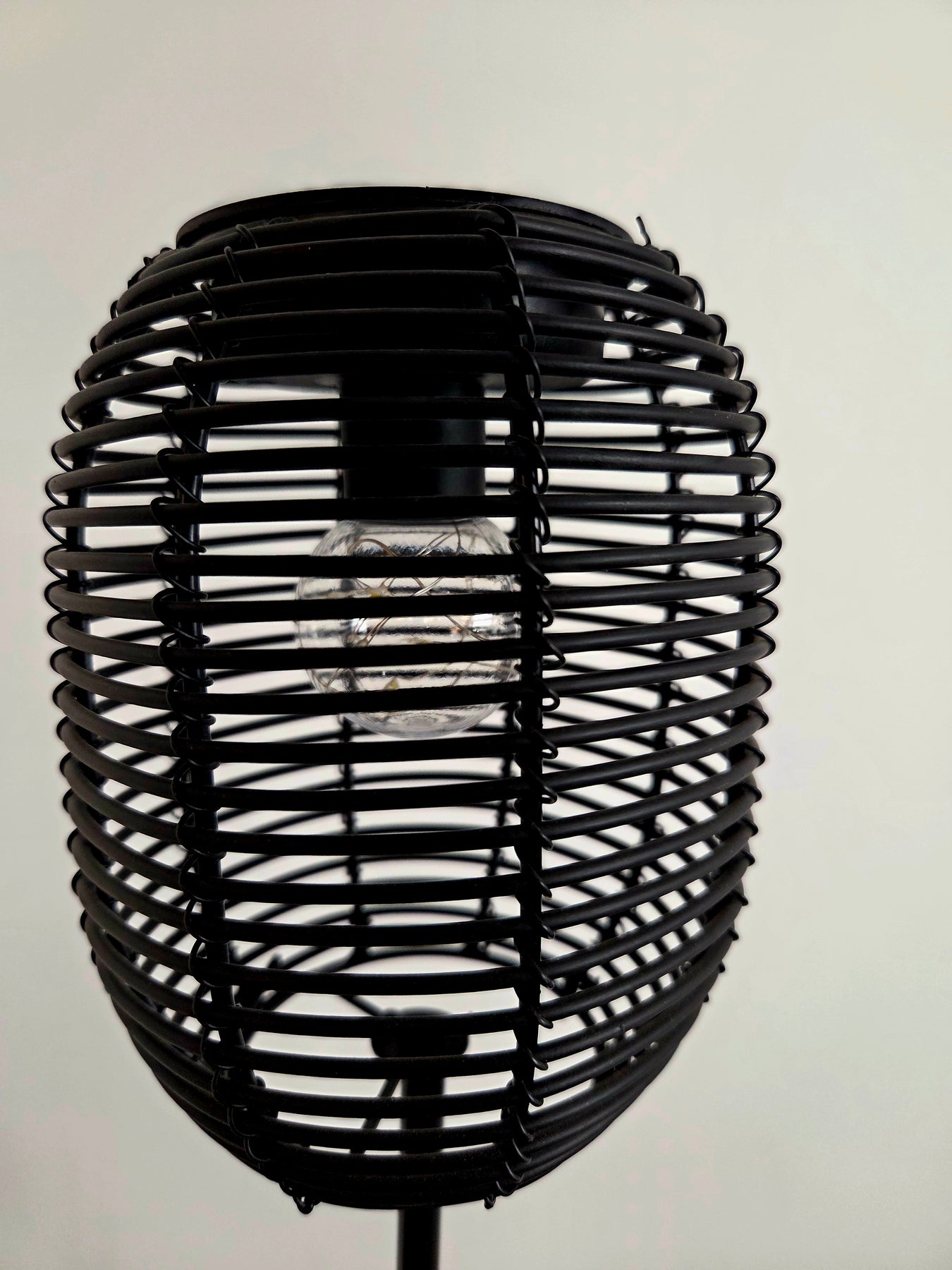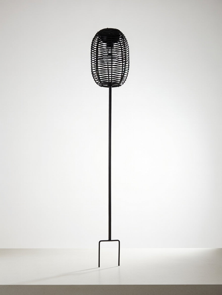 Den 20 cm høje lanterne sidder på en stabil, 67 cm sort metalspyd med praktisk jordfæste, så den nemt stikkes ned i græs, jord eller krukker – total højde 87 cm. Spydet kan skrues af, så lanternen også kan stå frit på bord, terrassehylde, vindueskarm eller altan.