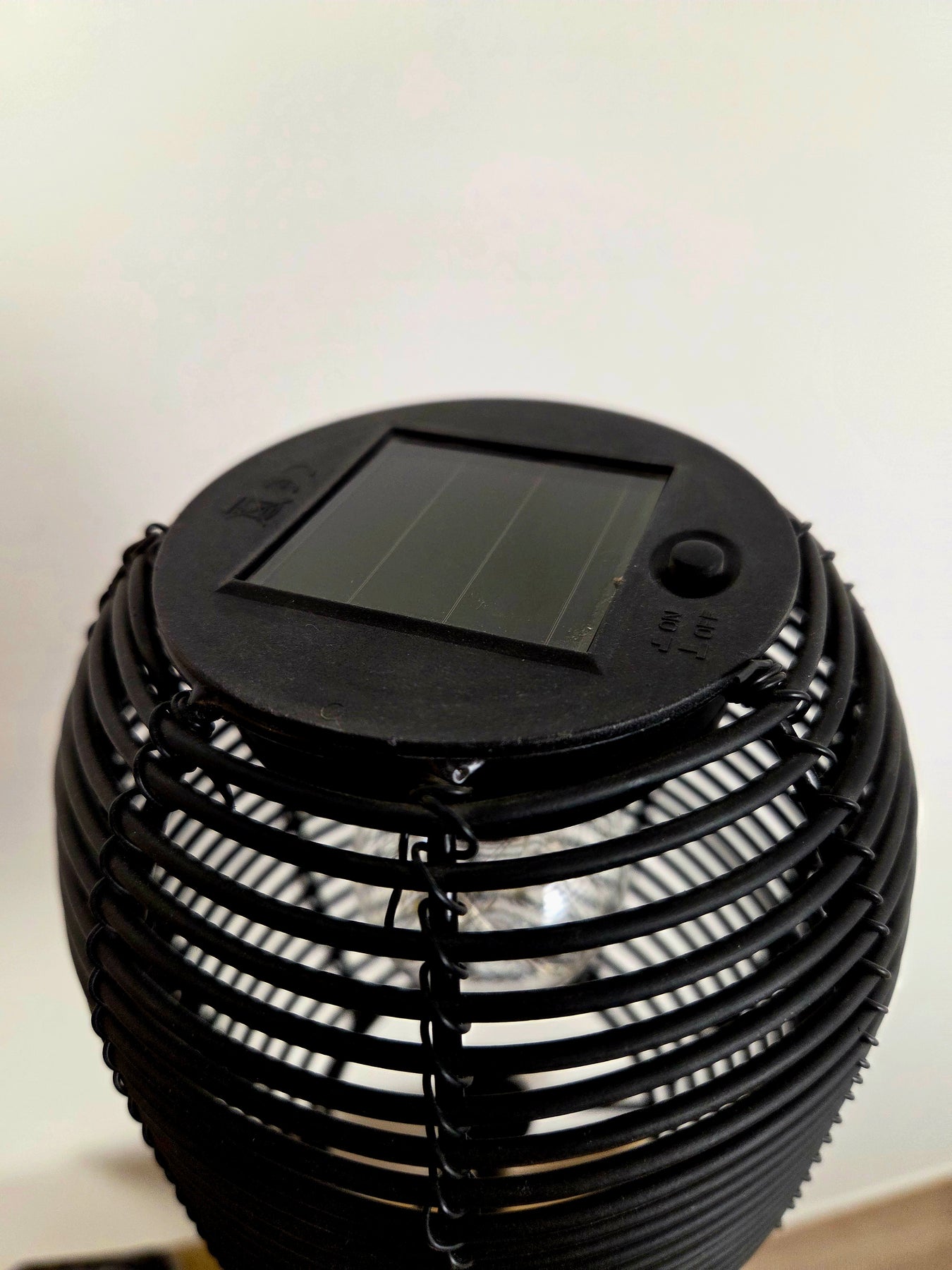 Elegant solcelledrevet lanterne i sort metalnet med blødt, varmt lys – perfekt til at lyse op i haven, bedet eller langs stien.
