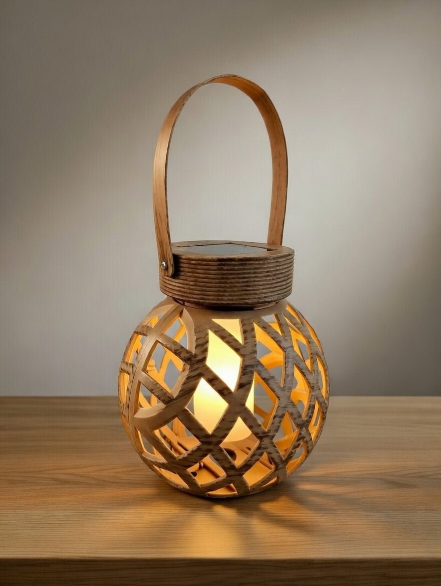 Den perfekte lille solcellelanterne til intim hygge. Med sin runde, flettede bambus-kurv og tynde jute-hank spreder den et blødt, varmt lys – opladet via det diskrete solpanel på toppen.