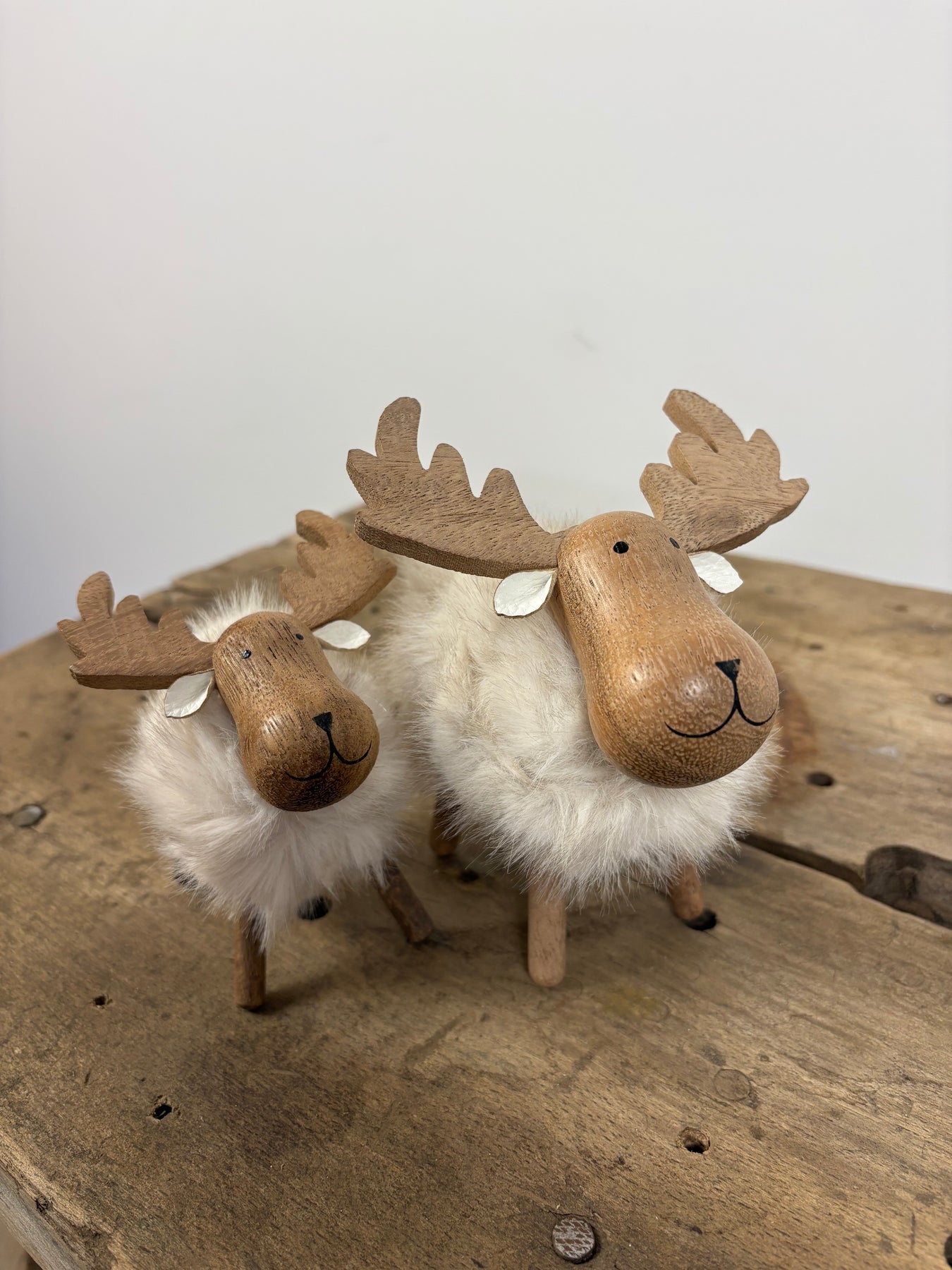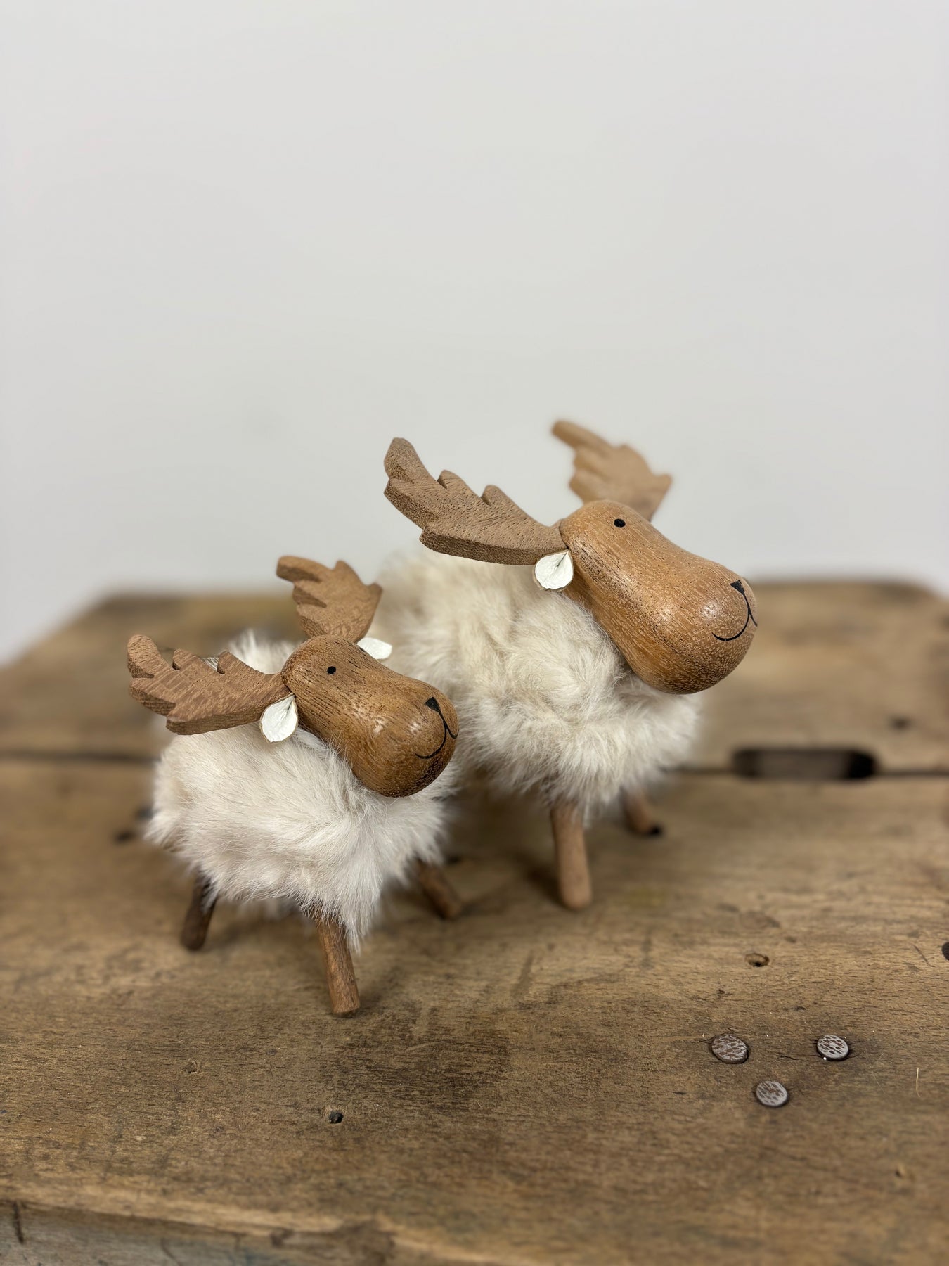 Disse charmerende Juleelge findes i to størrelser: 15,2 cm og 11,3 cm, perfekt til at tilføje en festlig stemning til din jul. Med deres elegante og kompakte design er de ideelle til at pynte julebordet eller hylden. Skab en hyggelig og traditionel julestemning i stuen eller entreen med disse stilfulde små elge i juletiden!