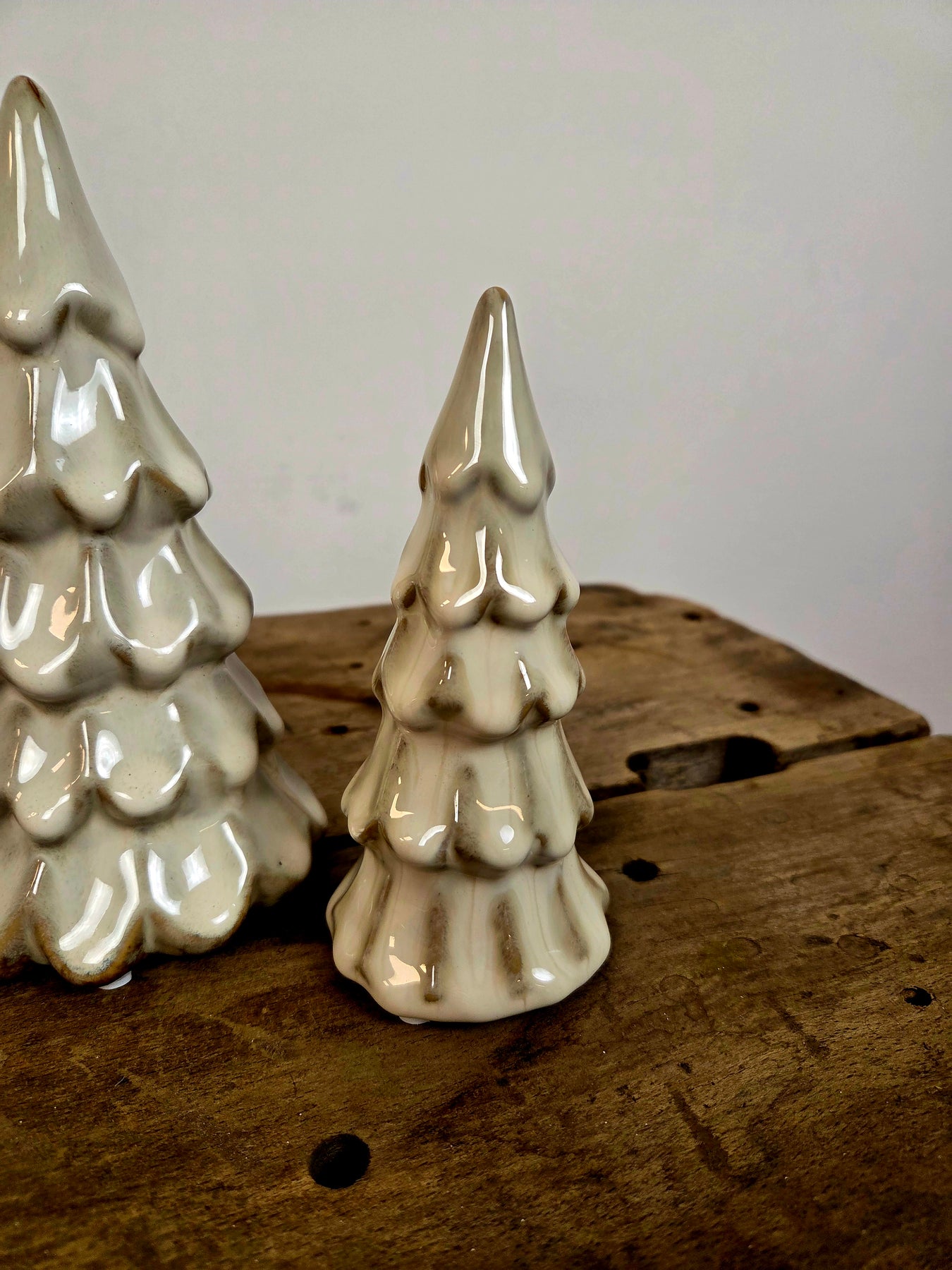 Disse smukke keramiske juletræer er den perfekte måde at tilføje en naturlig og elegant julestemning til dit hjem. Træerne kommer i flere forskellige størrelser – fra ca. 10 cm til 25 cm høje – og nuancer af grøn, der varierer fra mørk skovgrøn til lysere toner, så du kan mixe og matche til din indretning. Placer dem på hylden, bordet, i vindueskarmen eller som en del af en større julearrangement – de er robuste, tidløse og holder sig smukke år efter år. Ideelle til både traditionel og minimalistisk julpynt, vil disse træer bringe ro og hygge ind i højtiden og være en favorit blandt familie og gæster!