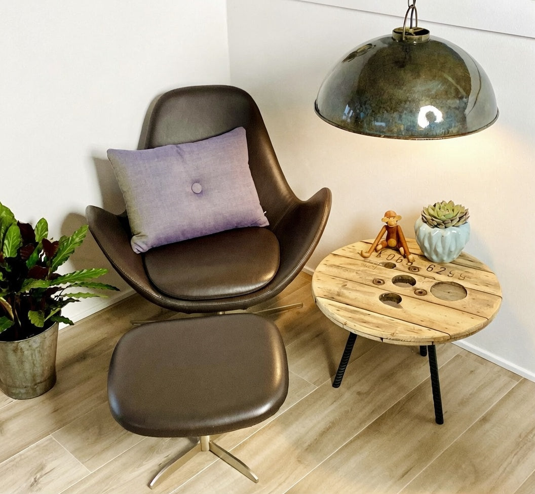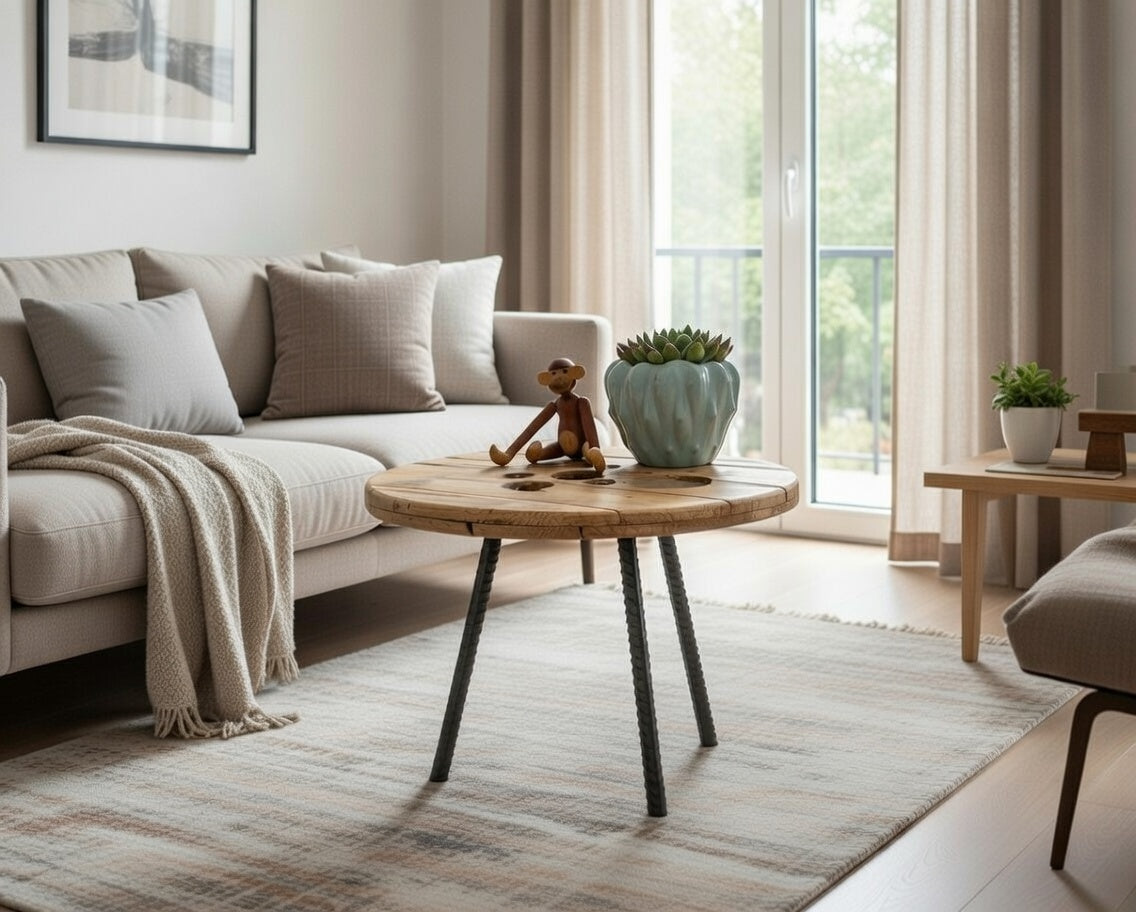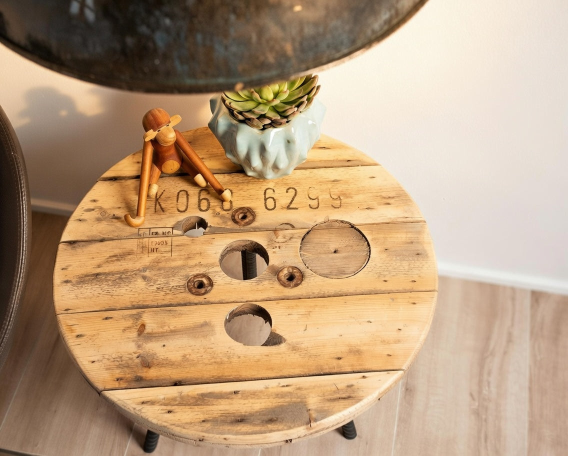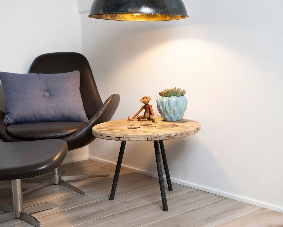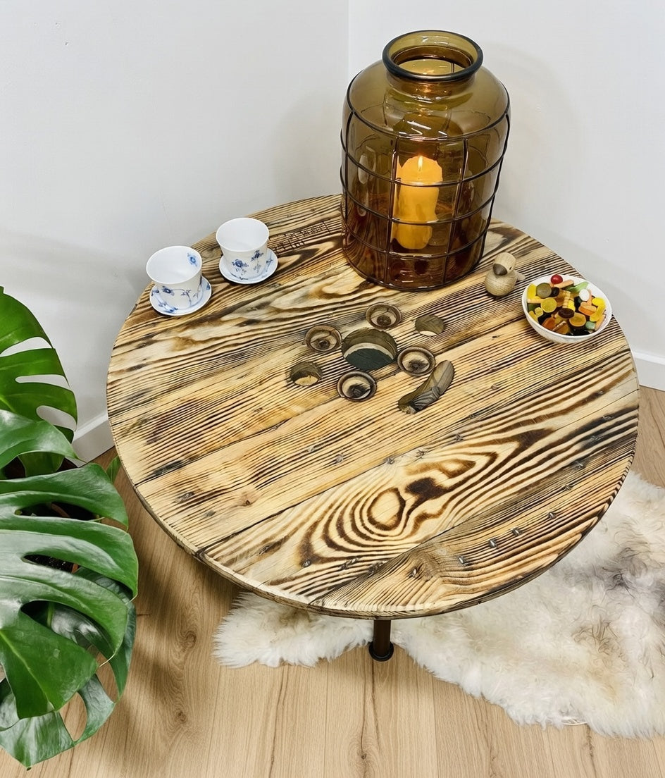 Unikt runt soffbord tillverkat av kabeltrumma - Skapa stil och funktion i ditt vardagsrum